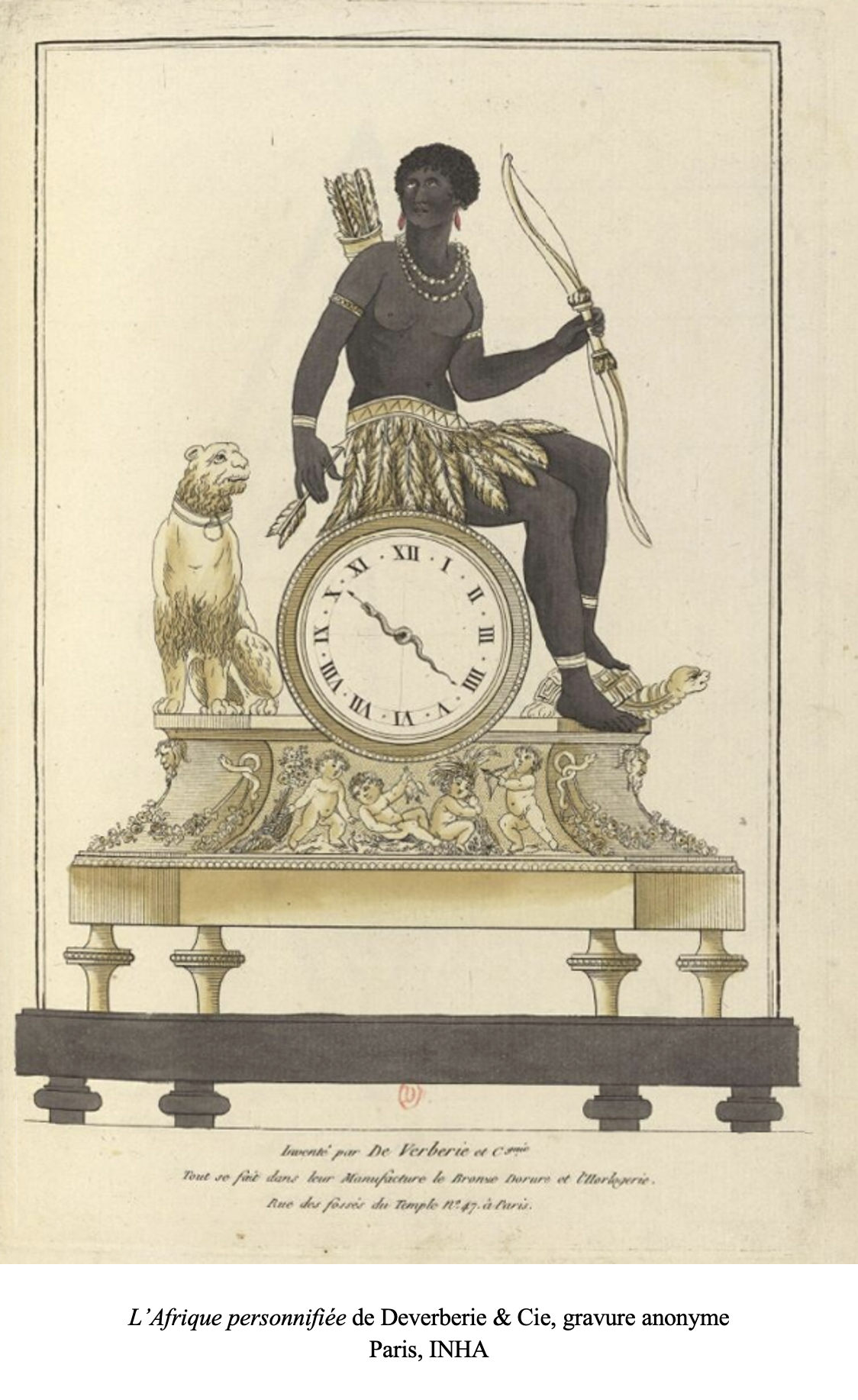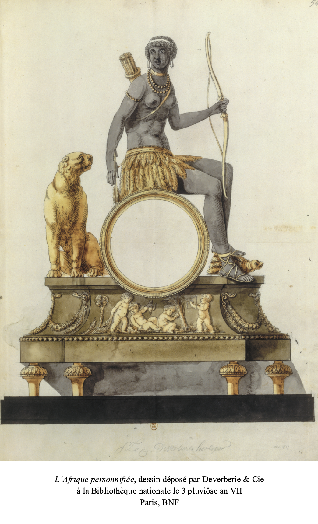 Elles font écho à un courant philosophique développé dans quelques grands ouvrages littéraires et historiques, notamment Paul et Virginie de Bernardin de Saint-Pierre publié en 1787 qui dépeint l’innocence de l’Homme, Atala de Chateaubriand qui restaure l’idéal chrétien et surtout le chef-d’œuvre de Daniel Defoe publié en 1719 : Robinson Crusoé. Le dessin original de la pendule proposée, titré « l’Afrique », fut déposé par le fondeur-ciseleur parisien Jean-Simon Deverberie en An VII (illustré dans Dominique et Pascal Flechon, « La pendule au nègre », dans Bulletin de l’association nationale des collectionneurs et amateurs d’horlogerie ancienne, printemps 1992, n°63, p. 32, photo n°2).
