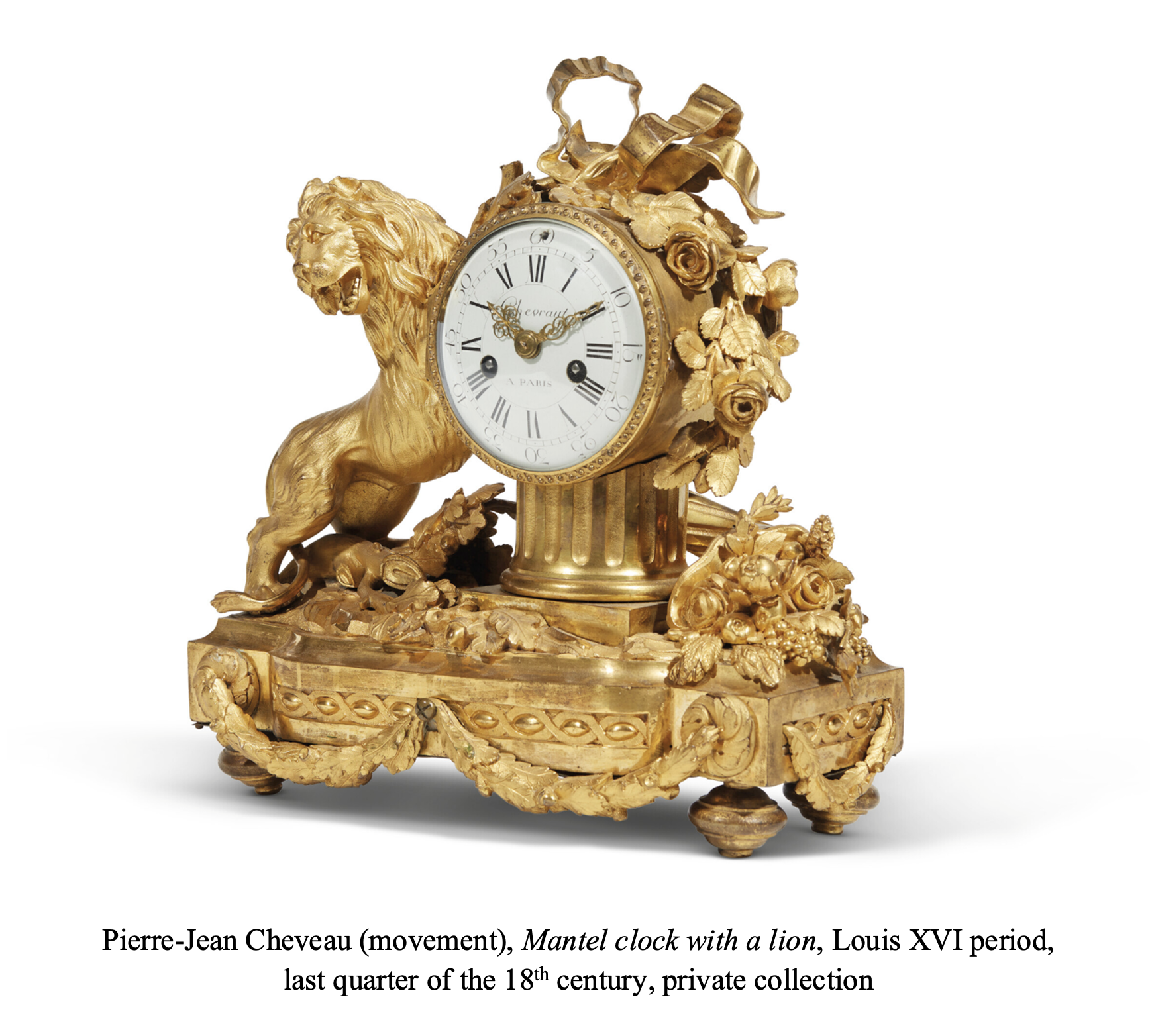 One further clock of this type, whose dial is signed “Festeau le jeune”, was formerly in the collection of Viscountess Vigier (sold Paris, Palais Galliera, Maître Rheims, June 2-3, 1970, lot 80).